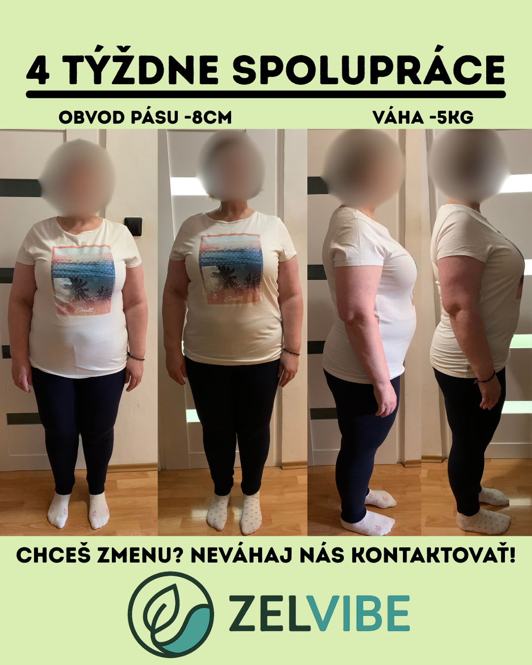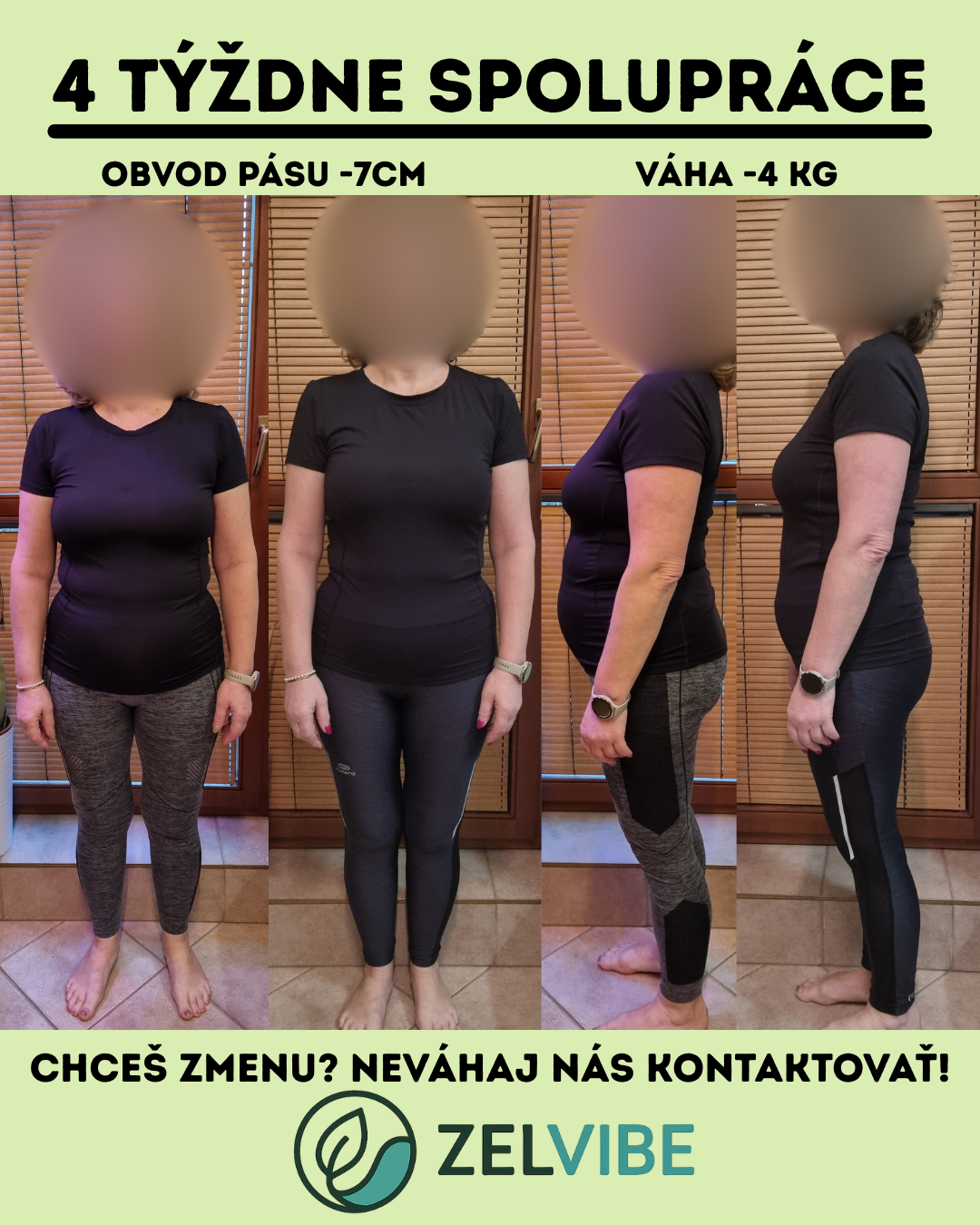 Aj bez extrémov sa jej podarilo znížiť hmotnosť, spevniť postavu a cítiť sa istejšie vo vlastnom tele. Fotky pred a po ukazujú zmenu najmä v oblasti brucha a stehien, viditeľne lepšie držanie tela, no tou najväčšou zmenou je lepší vzťah k pohybu, viac energie a väčšie sebavedomie.
